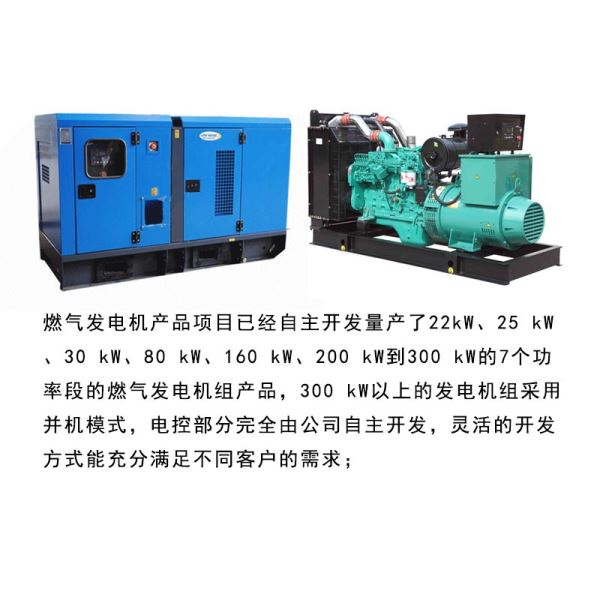The company's gas generator product project has independently developed and mass-produced 7 power bands of 22kw, 25kw, 30kw, 80kw, 160kw, 200kw, and 300kw gas generator units. Generators above 300kw adopt well turbine mode, and the electronic control part is fully developed by the company. The flexible development method can fully meet the needs of different customers in Manzhu